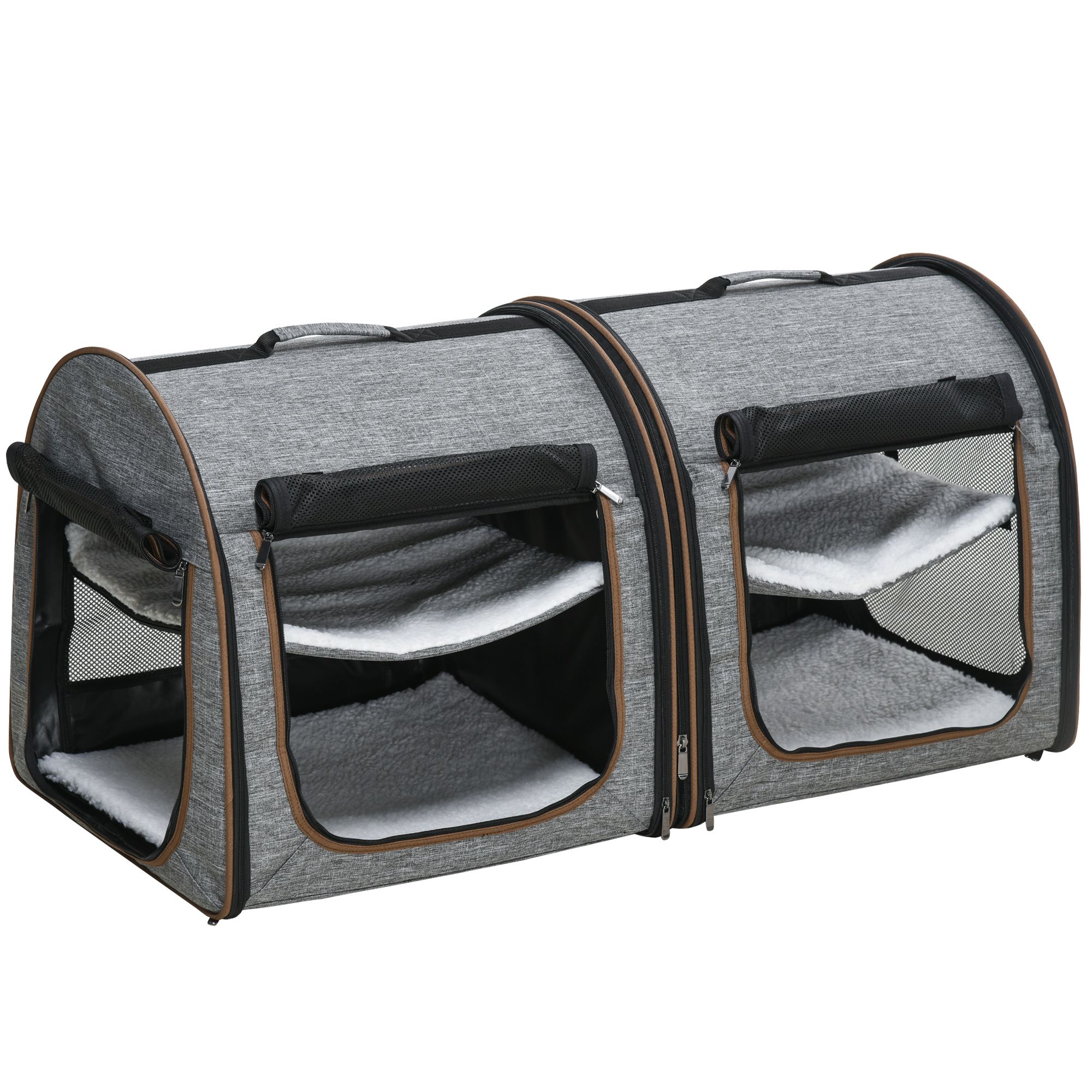 PawHut 39" Portable Twin Compartment Show House Cat Cage/Condo, Soft-Sided Pet kennel, Dual Compartment, Soft Cushions & Storage Bag, Gray PawHut 39" Portable Twin Compartment Show House Cat Cage/Condo, Soft-Sided Pet kennel, Dual Compartment, Soft Cushions & Storage Bag, Gray PawHut 39" Portable Twin Compartment Show House Cat Cage/Condo, Soft-Sided Pet kennel, Dual Compartment, Soft Cushions & Storage Bag, Gray