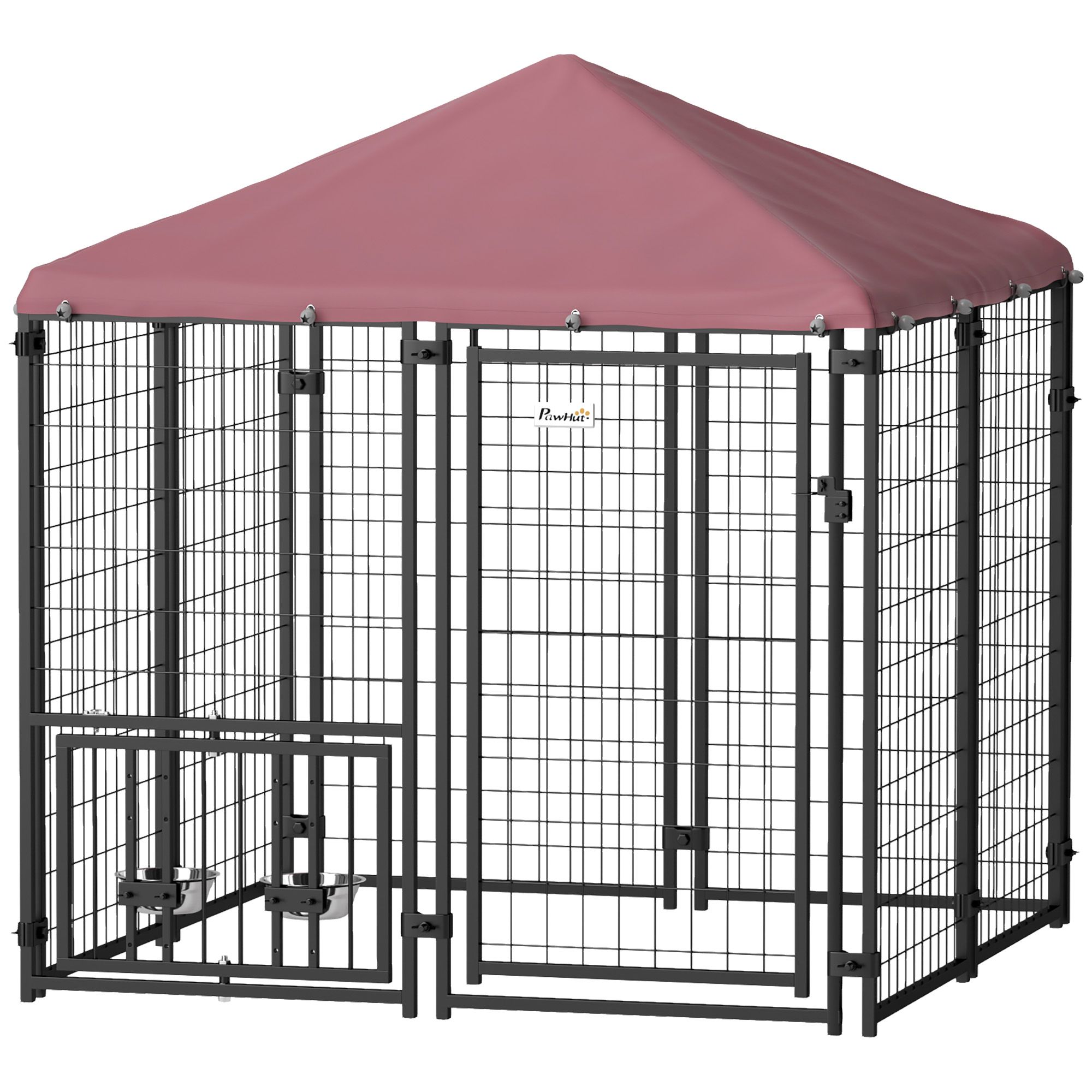 PawHut Welded Wire Outdoor Dog Kennel with 360° Rotating & 4 Levels Adjustable Bowls, Waterproof Cover, 4.6' x 4.6' x 5' PawHut Welded Wire Outdoor Dog Kennel with 360° Rotating & 4 Levels Adjustable Bowls, Waterproof Cover, 4.6' x 4.6' x 5' PawHut Welded Wire Outdoor Dog Kennel with 360° Rotating & 4 Levels Adjustable Bowls, Waterproof Cover, 4.6' x 4.6' x 5'